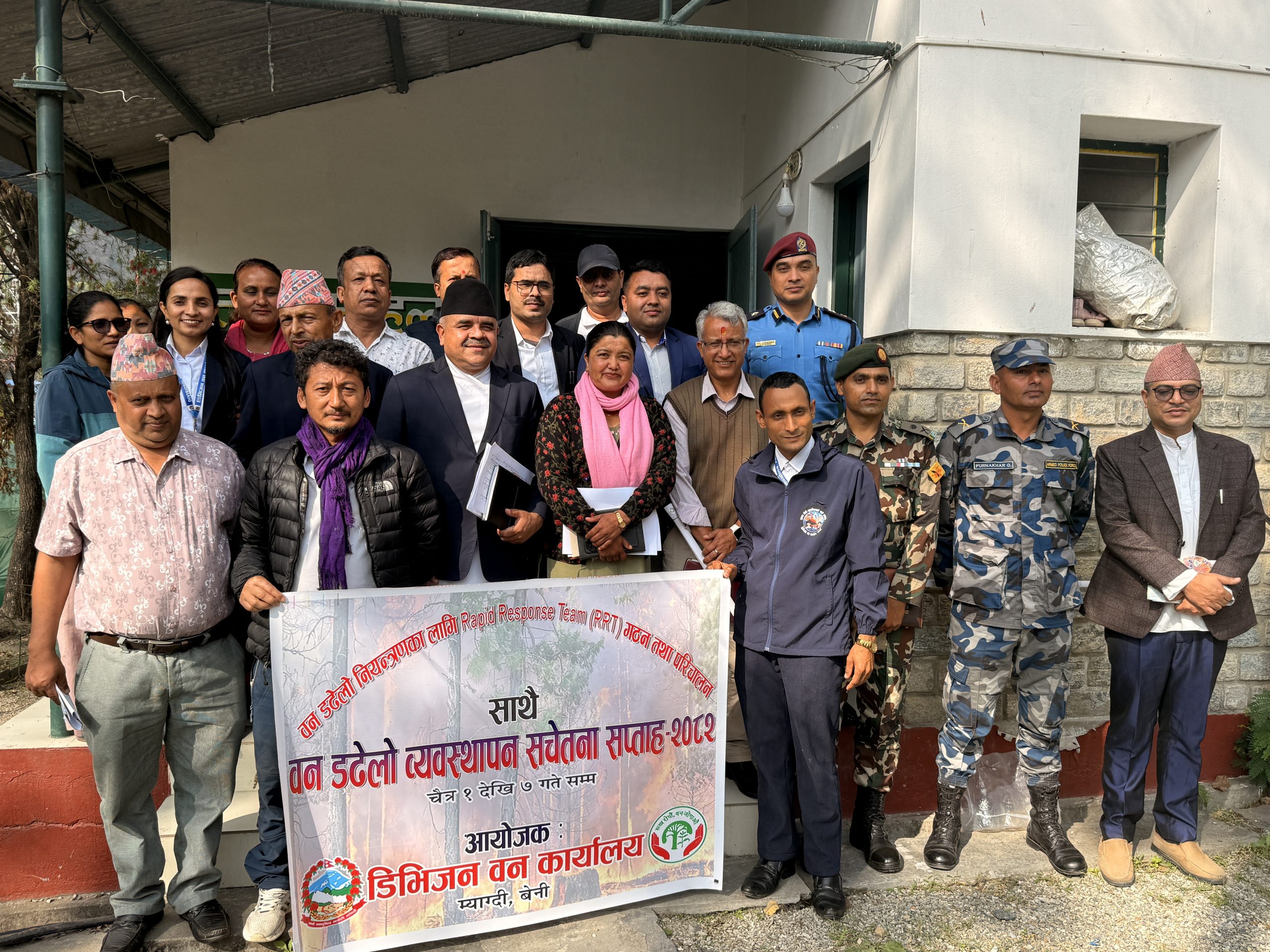 सामुदायिक वन क्षेत्रमा लाग्ने गरेको डढेलोको जोखिम कम गर्नका लागि डिभिजन वन कार्यालय म्याग्दीले वन डढेलो..