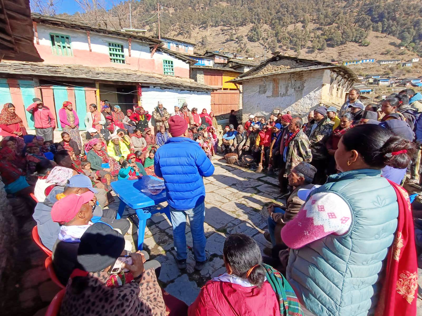 नेपाल कम्युनिष्ट पार्टी एमाले म्याग्दीको आयोजनामा मङ्गलवार बेनी नगरपालिका ५ नम्बर वडाको गाजने र पुलाचौरमा..