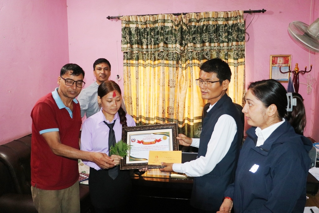 विजेता विद्यार्थीहरुलाई क्रमशः नगद सातहजार पाँचसय, चारहजार र दुईहजार पाँचसय रुपैयाँसहित प्रमाणपत्रले पुरस्कृत गरिएको थियो । उक्त पुरस्कार जिल्ला हुलाक कार्यालय म्याग्दीका प्रमुख रमेश थापा र नेपाल पत्रकार महासंघ जिल्ला शाखा म्याग्दीका अध्यक्ष हरिकृष्ण गौतमले विजेता विद्यार्थीहरुलाई वितरण गर्नुभएको थियो । नयाँ पुस्तालाई हुलाक र चिट्ठीपत्रको महत्वका बारेमा सचेतना जगाउने उद्देश्यले हुलाक कार्यालयमार्फत माध्यमिक विद्यालयस्तरीय चिट्ठीपत्रलेखन प्रतियोगिता सञ्चालन गरिएको कार्यालय प्रमुख थापाले बताउनुभयो ।