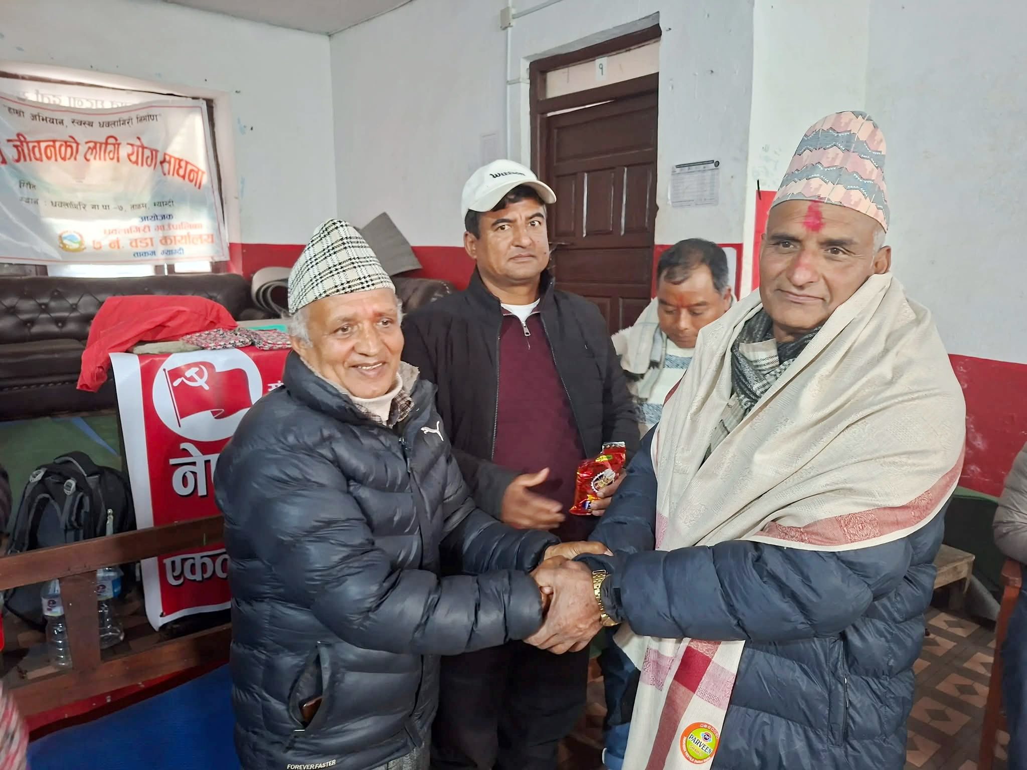 उक्त कार्यक्रममा ४३ वर्ष शिक्षण पेशा गरेर हालै सेवानिवृत हुनुभएका ताकमका ठाकुरप्रसाद पौडेललाई दोसल्ला ओढाएर सम्मान गरिएको थियो । आगामी फागुन २१ गते हुन लागेको प्रतिनिधि सभा सदस्य निर्वाचनका लागि प्रत्यक्षतर्फ सिफारिस भएका अर्जुनबहादुर थापा, कृष्णकुमार विश्वकर्मा, गमबहादुर श्रीसमगर, टेकबहादुर वि.क., दुर्गा कार्की (बानियाँ)सहितको टोलीले एकताको सन्देश र चुनावी तयारीका लागि गाउँ अभियानमा जुटेका हुन् ।