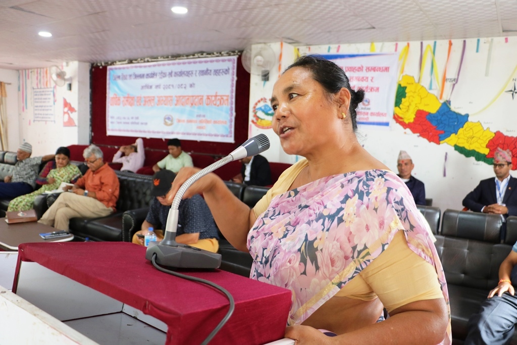 कार्यक्रमको उद्घाटन गर्दै अर्का संविधानसभा सदस्य नरदेवी पुनले सङ्घीयताको मूल मर्म जनताको घरदैलोमा सरकार तथा सेवासुविधा भन्ने रहेकाले योजना छनोटको विधि नबन्दासम्म जिल्लास्थित कार्यालयहरुको आवश्यकता रहेकोमा जोड दिनुभयो । उहाँले सङ्घीयता बलियो हुन नसकेको बताउँदै कर्मचारीको रोजाई स्थानीय तह नबन्दासम्म जिल्लास्थित कार्यालयहरुको आवश्यक पर्ने बताउनुभयो । पूर्वमन्त्री समेत रहनुभएकी संविधानसभा सदस्य पुनले खर्च कम गर्नुपर्छ भन्ने विषय जायज भए पनि खर्च कुन–कुन शीर्षकबाट कम गर्ने भन्ने विषयमा मसिनो तरिकाले छलफल चलाउनुपर्ने बताउँदै जनतालाई सेवासुविधाको नाममा बाधा पर्ने गरी खर्च कटौती गर्न नहुने बताउनुभयो ।